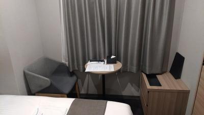 部屋は多機能シャワーブースのセミダブルBです。シャワーブース、トイレと洗面が全て独立しているタイプです。デスクカウンターは無く、奥に丸テーブルと椅子があります。ビジネス利用でしたが遅めの到着で、電車の中でほとんど仕事を片付けてきたので特に問題ありませんでしたが、丸テーブルだと仕事はしにくいです。あまりビジネス向きの部屋ではありません。Wi-Fiは非常に速くて快適でした。
