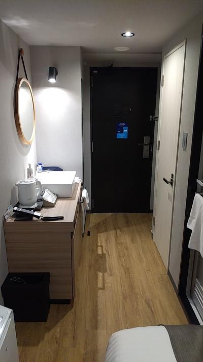 部屋は15平米のシングルルームです。ごく一般的なビジネスホテルの広さだと思います。オープンしてそれ程経っていないのできれいです。