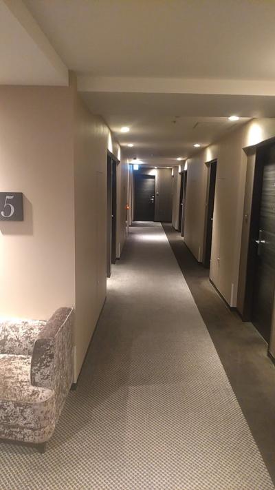 エレベーターを降りると吹き抜けになっており、通路は屋外です。マンションのような構造なので、冬場は冷たい風が吹き込んで寒いです。