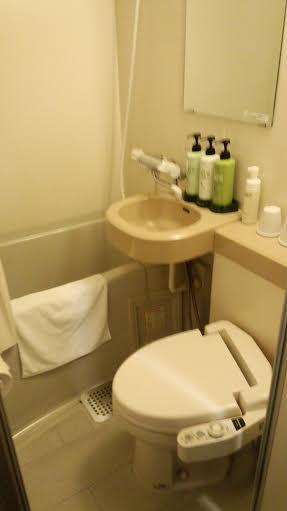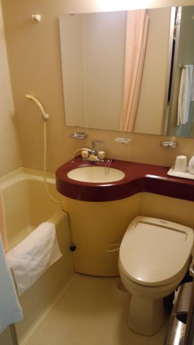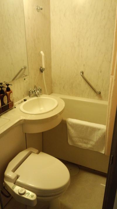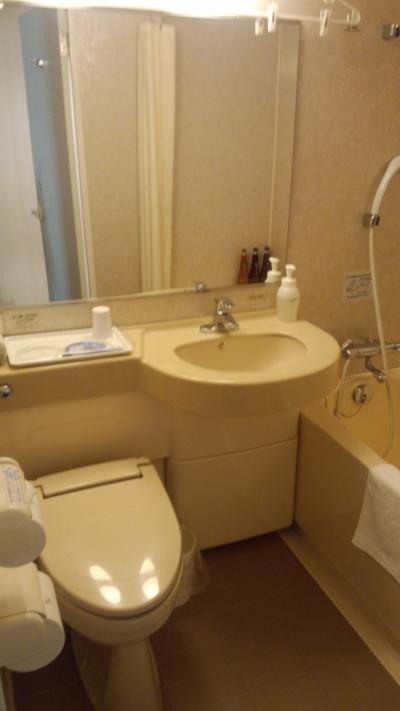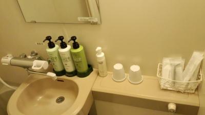 部屋のユニットバスは狭く、水道はサーモスタットも付いていませんが、大浴場があるので使用することは無いと思います。