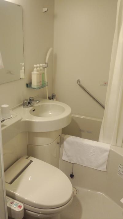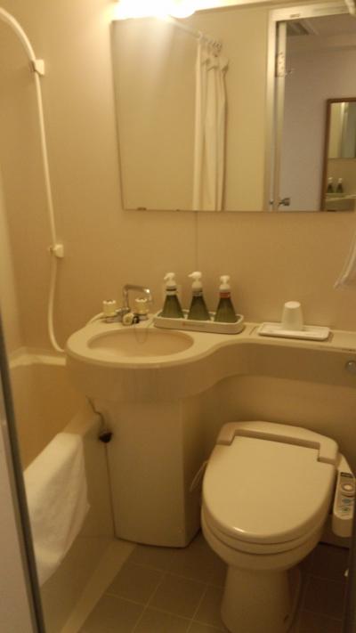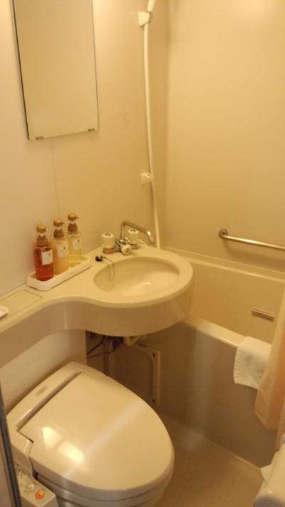 部屋のユニットバスは狭いですが、2階に大浴場があるので使うことは無いでしょう。