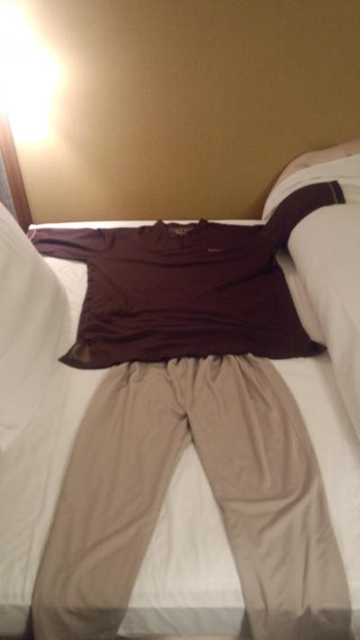 一番気に入ったのは部屋着です。浴衣が置いてあるホテルが多いですが、ここはスウェットのような上下分かれた物です。これで夜食も大浴場も行くことができます。