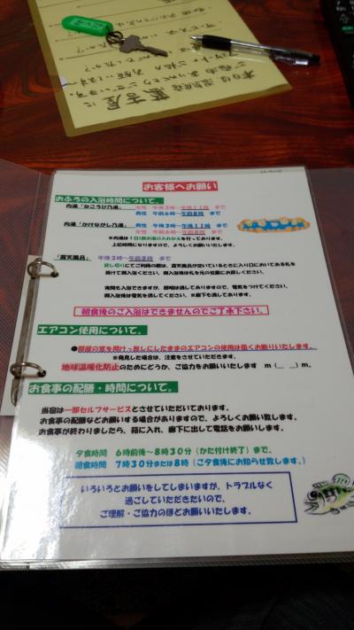 夕食が18時からなのでその前にまず温泉に行きました。民宿なのでそれほど広くはありません。お湯の温度が高く熱かったのですぐに逆上せてしまい、長くつかることはできませんでした。私は行きませんでしたが、別に露天風呂があります。これは貸し切りにすることができるので、家族単位で気兼ねなく利用することができます。