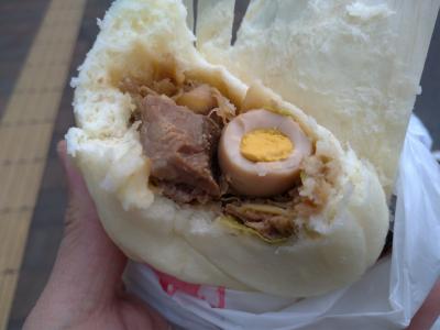 コンビニの肉まんと同じくらいかな。角煮とうずらの卵が入ってました。
