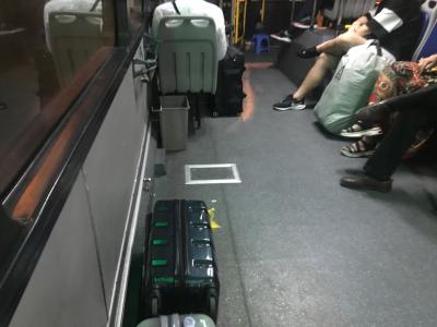 バスの中央付近はスーツケース置き場になっているので車体の大きさの割に座席数が少ない。