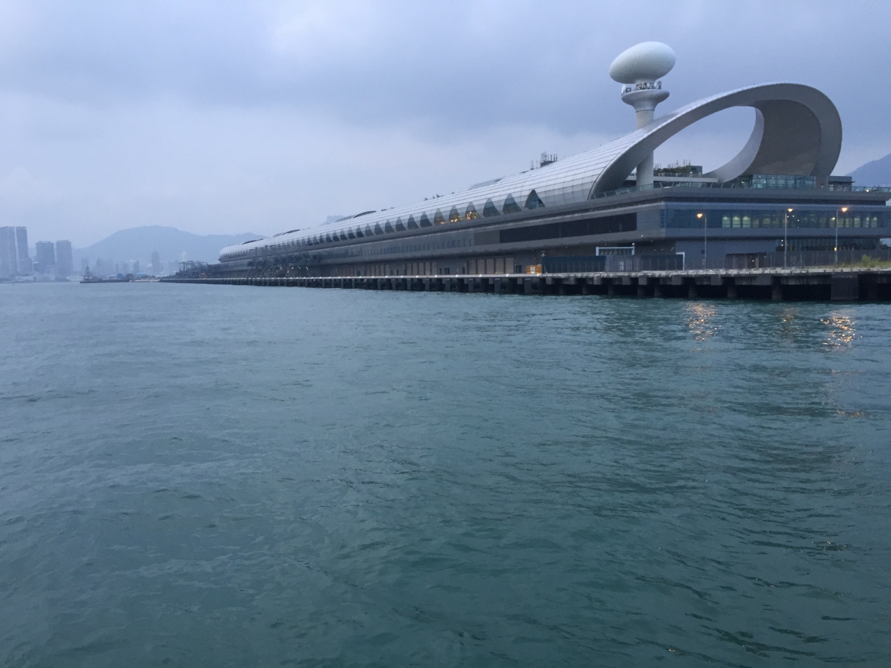 以前滑走路だった部分に巨大な建物が建設され、ビクトリア湾からもその姿をみることができる。