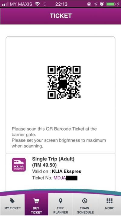 KLセントラルからKLIAまで通常料金でMYR55の運賃設定であるが、