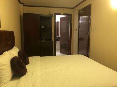 部屋とバスルームはそこそこ快適であった。ベッドはかなりクッションが柔らかめだった。
