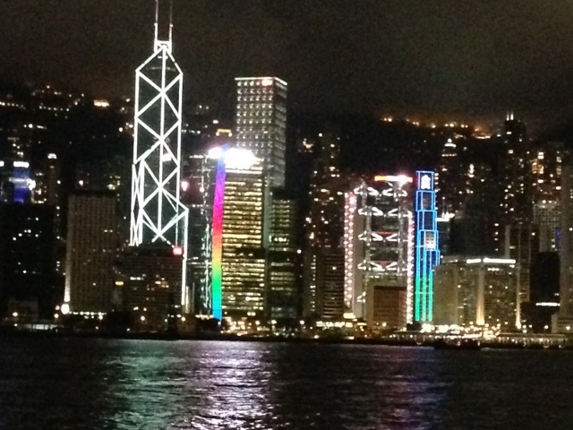 香港の昼間は暑いので香港の夜景を海上から眺めるのもいいものです。