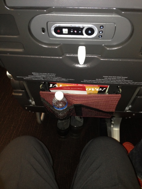 帰りはD席の通路側シートピッチがちょっと広がった膝元に少し余裕ができました。