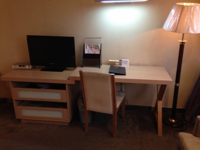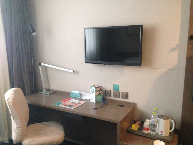 部屋は錦江之星チェーンの明るい雰囲気ではなく。暖色系の落ち着いた色合い。