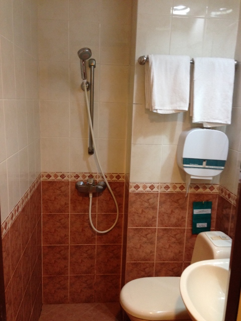 シャワーを浴びるとトイレも水浸し、タオルはバスタオルが2枚だけ。