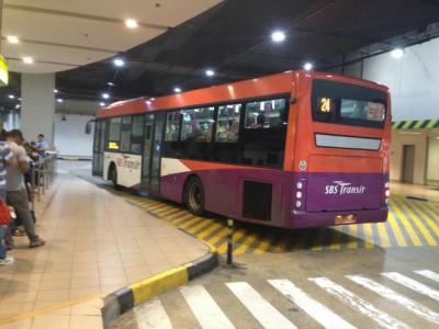 チャンギ空港は地下のバス停からの発着。
