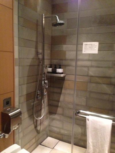 シャワーブースは可動式、天井固定式とボディーシャワーが利用できてとても快適!