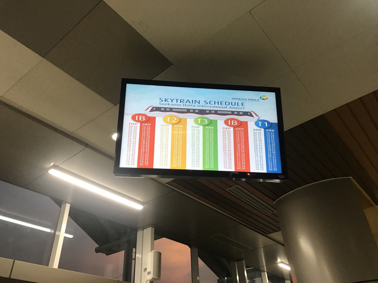 ターミナル間のスカイトレインは全線開通したものの運行システムは未完成で本数はかなり少ない。