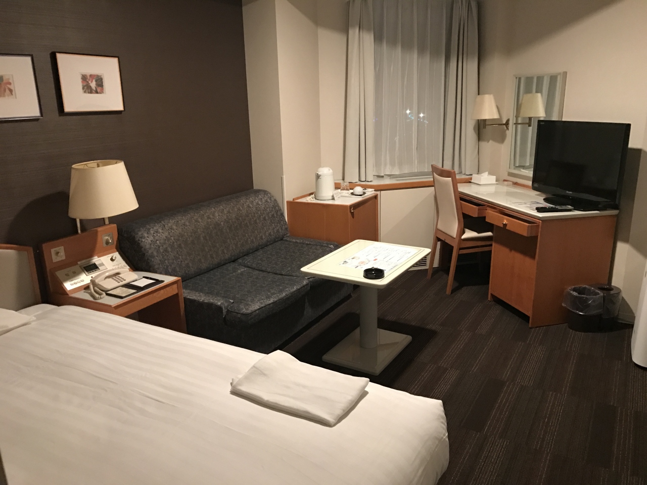 客室自体は古さを感じられ、デスクのコンセントや照明スイッチがテレビの裏の隠れた場所でちょっと使いづらかった。