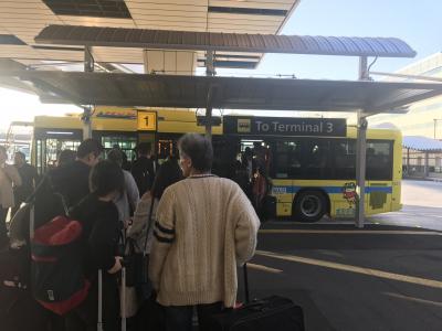 到着はT2だったのでまずはT3までのシャトルバスで移動。バスは一度、空港ゲートの外に出て再度ゲート内に入るルートで歩いた方が早そうであった。