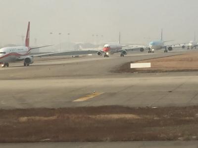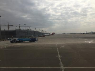 東方航空便などはバスでオープンスポットへの移動を強いられることが多い。