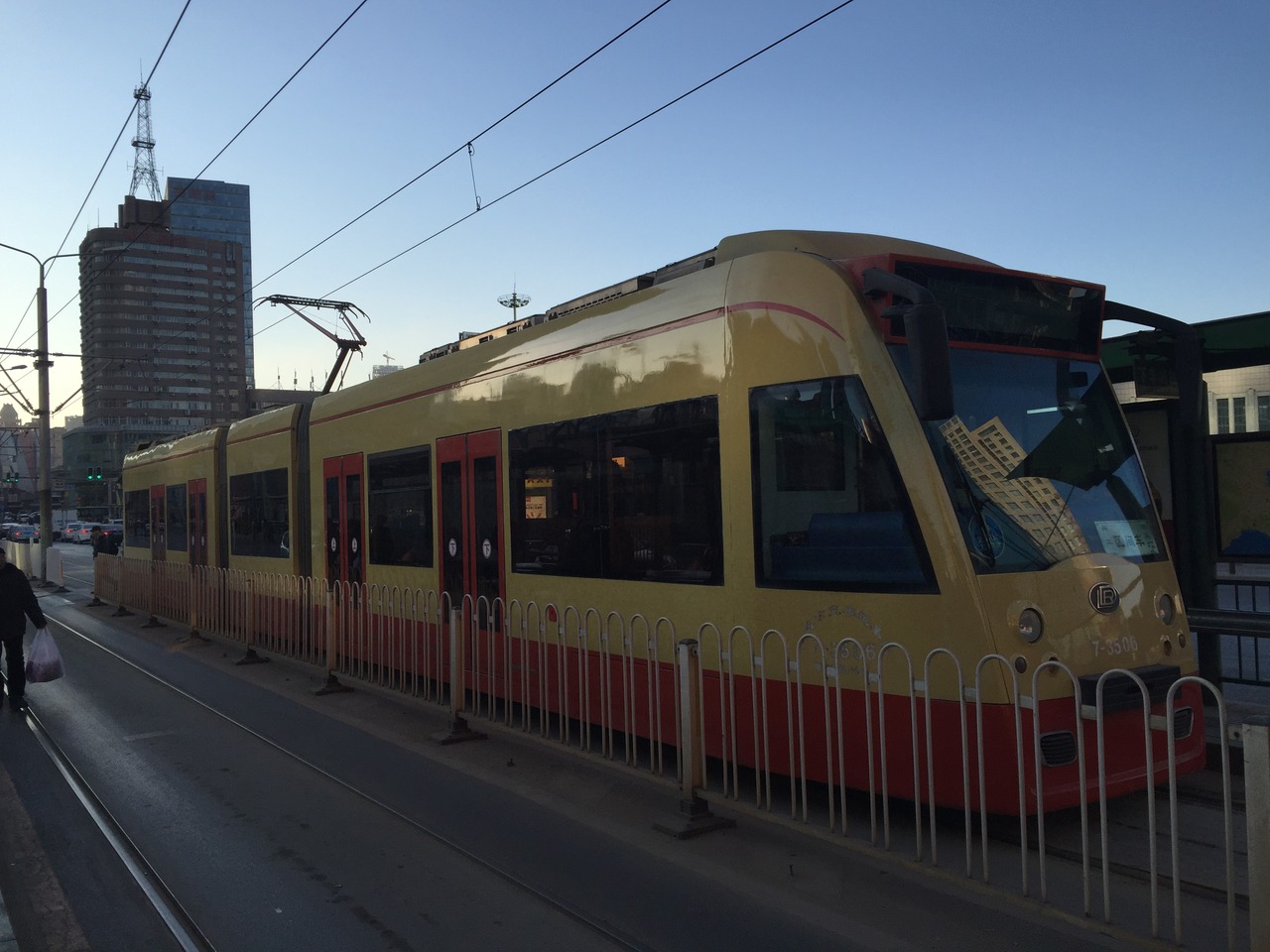 途中の停留所にはホームもない道路の真ん中に停車して乗り降りする。- 旅行時期