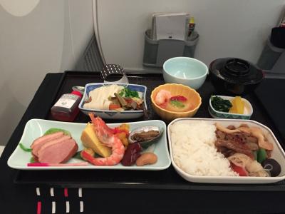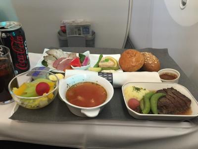 機内食は器はそれなりに立派ですが海外発はちょっと残念。