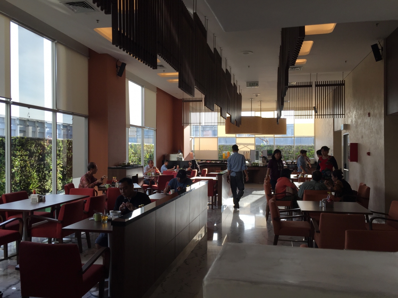 スカルノハッタ国際空港の国際線のプレミアチェックインカウンターからは専用の通路で入ることができるがが、JAL便は対応していないようでラウンジ入口にJALのマークがあるもののインビテーションは隣のPura IndahラウンジになっていたのでPPにて搭乗口側から入場。ラウンジ自体は狭くはないがソファーが詰め込まれた様に配置されているので窮屈さがある。