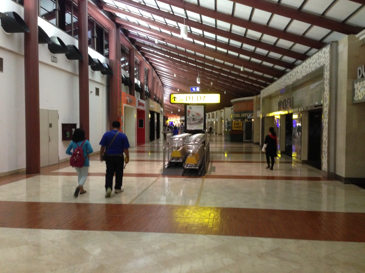出国当日早朝タクシーにて到着、出発ロビーに入るには当日のEチケット控えを見せなければカウンターエリアには入れない。