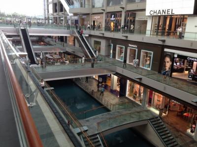 マリーナベイサンズの下のショッピングモールで高級店がのきを連ねています。