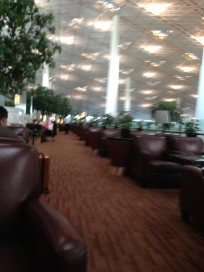 エアチャイナの本拠地、北京のファーストクラスラウンジ左右対称の位置にビジネスクラスラウンジもあるが、作りはほとんど変わらない。