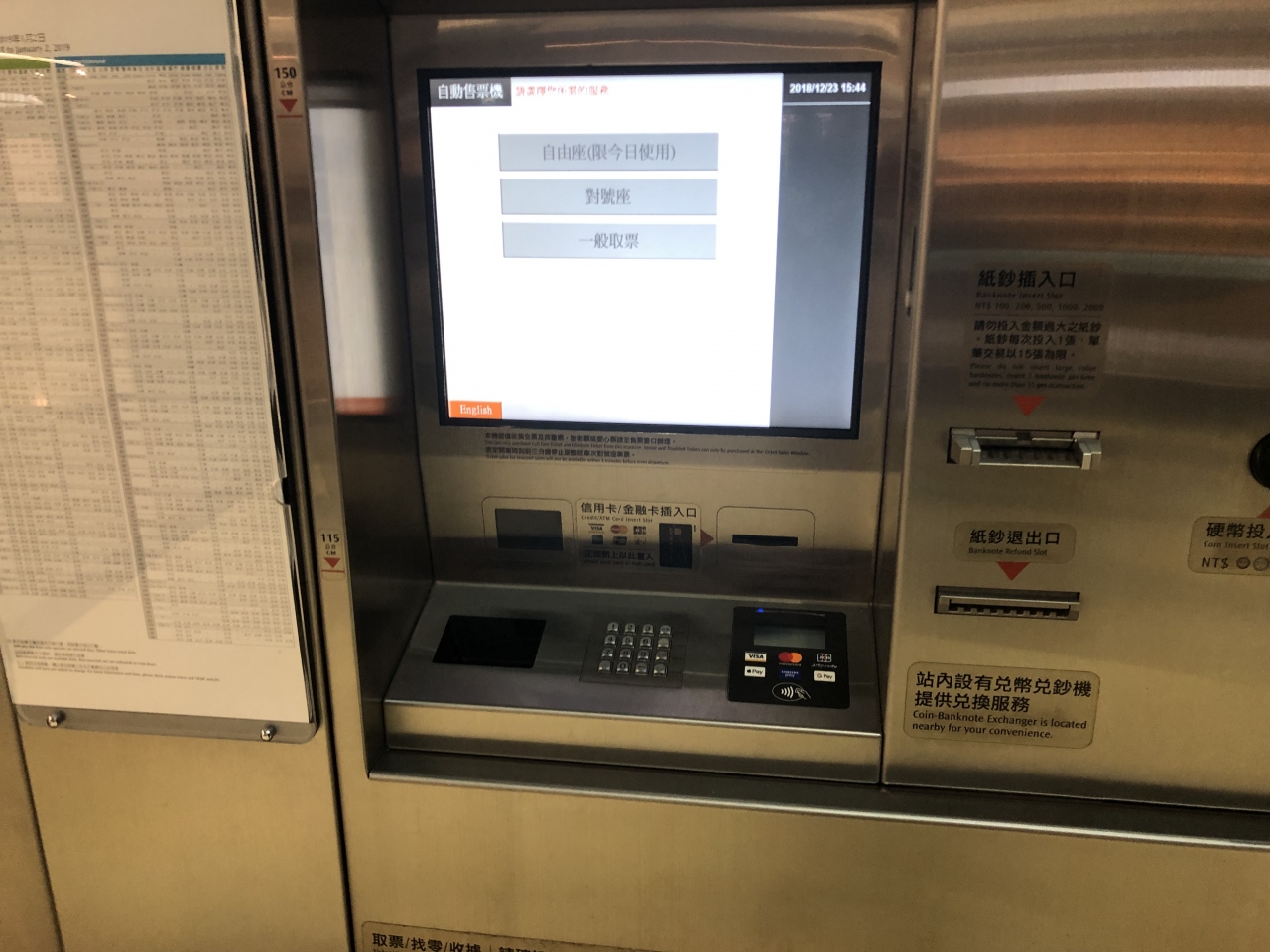 券売機期は現金以外にもクレジットカードやApplePayにも対応していた。- 旅行時期