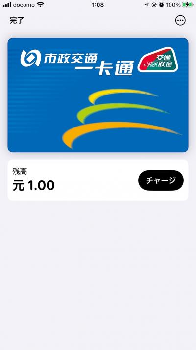 北京に向かう前に以前Apple payに登録しておいた北京の交通カード...
