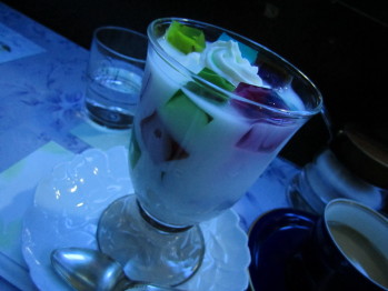こちらの夏限定の”金魚鉢”を食べてみたくて伺いました。人気で売切れてしまうことがあるとのことでしたので午前9時くらいに伺ったところ、ショーケースになかったのでお店の方に聞いたところ後ろのプラスチックのケースから出されていました。