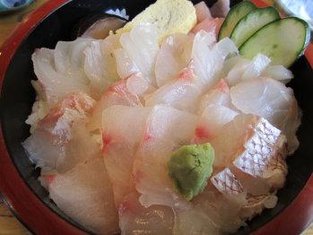 あんまり観光客に対してアピールしていなそうなお店構えなのですが金目鯛など他店と同じメニューはそろっているようでした。そしてお刺身定食は1050円からあります、おの辺りにしてはリーズナブルだと思いました。白身が好きなので白身丼をいただきましたが美味しかったです。接客も気さくでよかったです。- 旅行時期