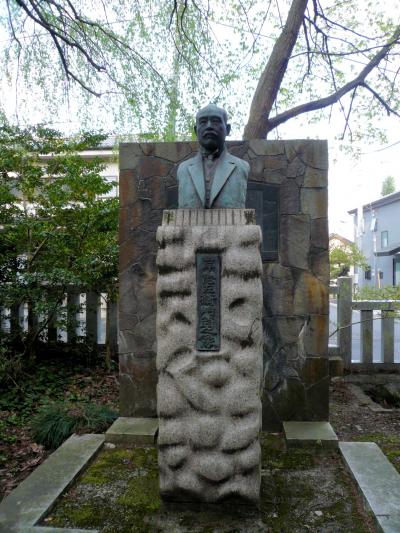 釜の淵の傍に板垣退助先生の銅像が立つ。