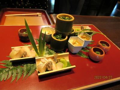 スタートからエンドまで、室内の飾りはもとより、食卓に並ぶ料理は竹容器や食器の趣味も良く、旬に忠実な季節感を感じさせ、いずれも色彩も美しく、味も良しで、おおいに楽しめた。