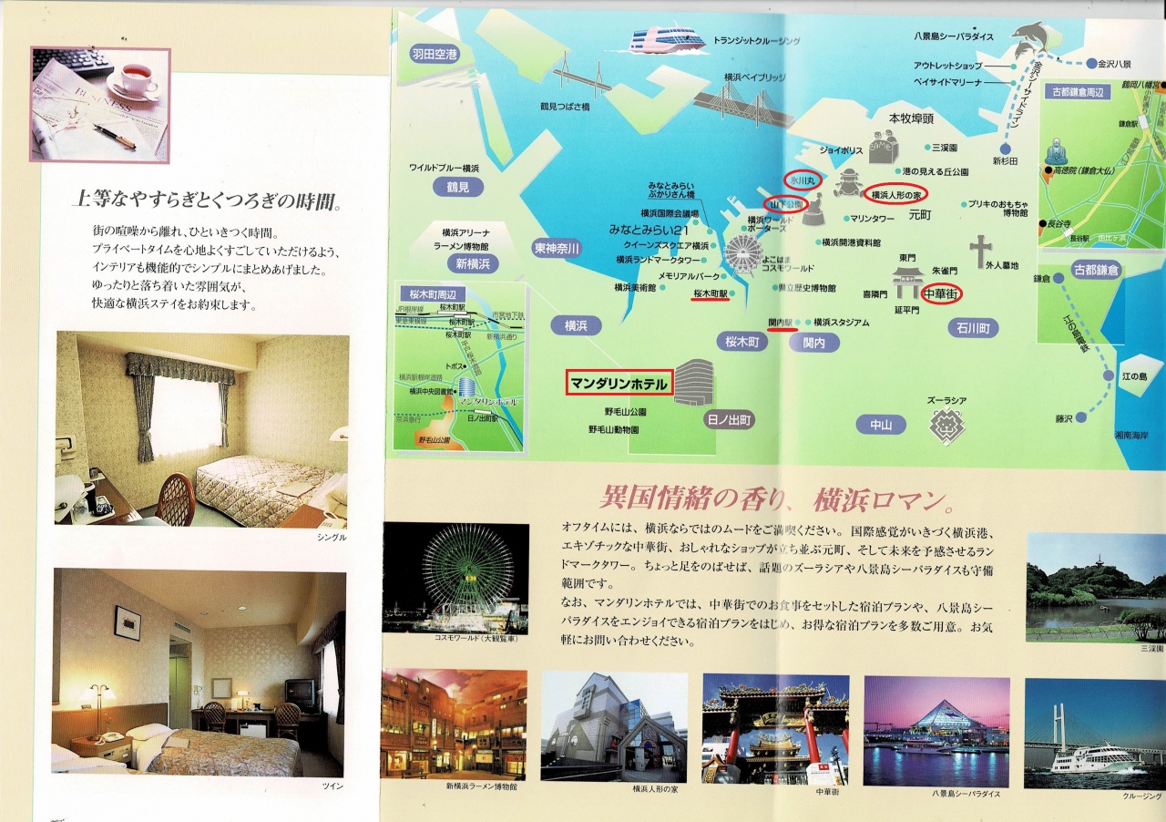 日ノ出町駅から徒歩3分に位置し、野毛山公園に近い横浜マンダリンホテルに泊まったが、アルバムに貼られた冊子のみが残り、残念にも写真は全く無しで、これでは何の記憶も感慨も無い。
