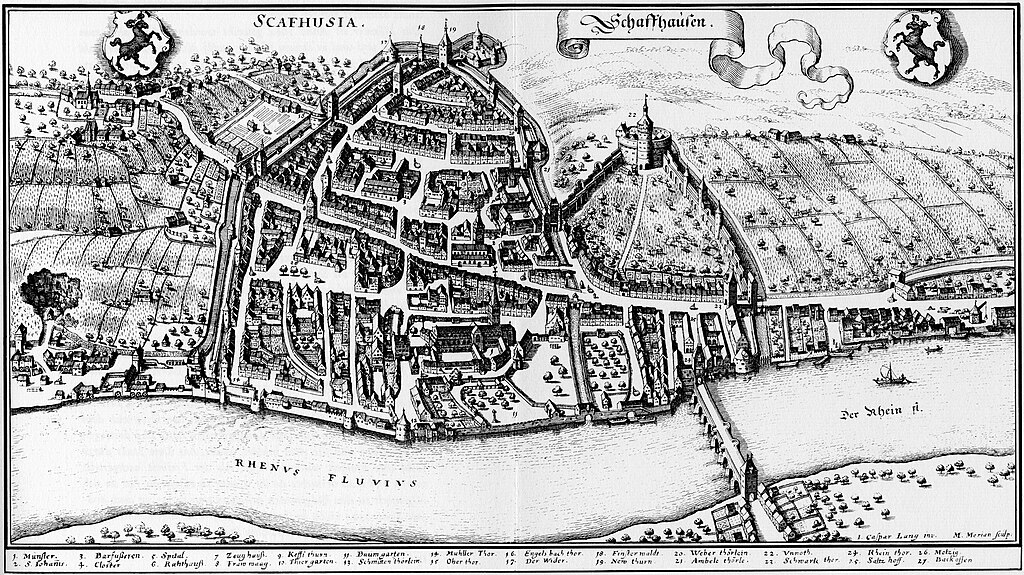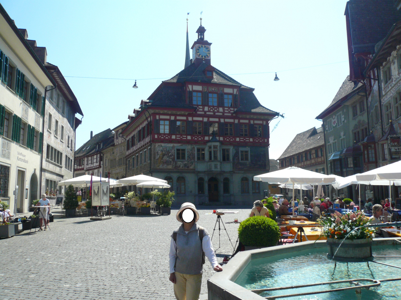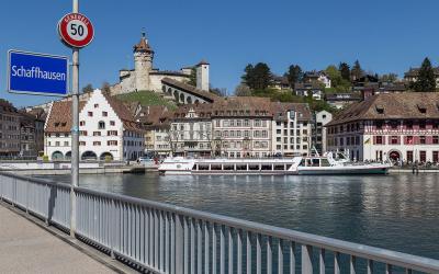 ノイハウゼンにあるラインの滝から、B13で4km走ったライン川畔の町Schaffhausenシャフハウゼンはスイスのシャフハウゼン州にある人口34千人の町で、小さいながらも同州の州都となっている。