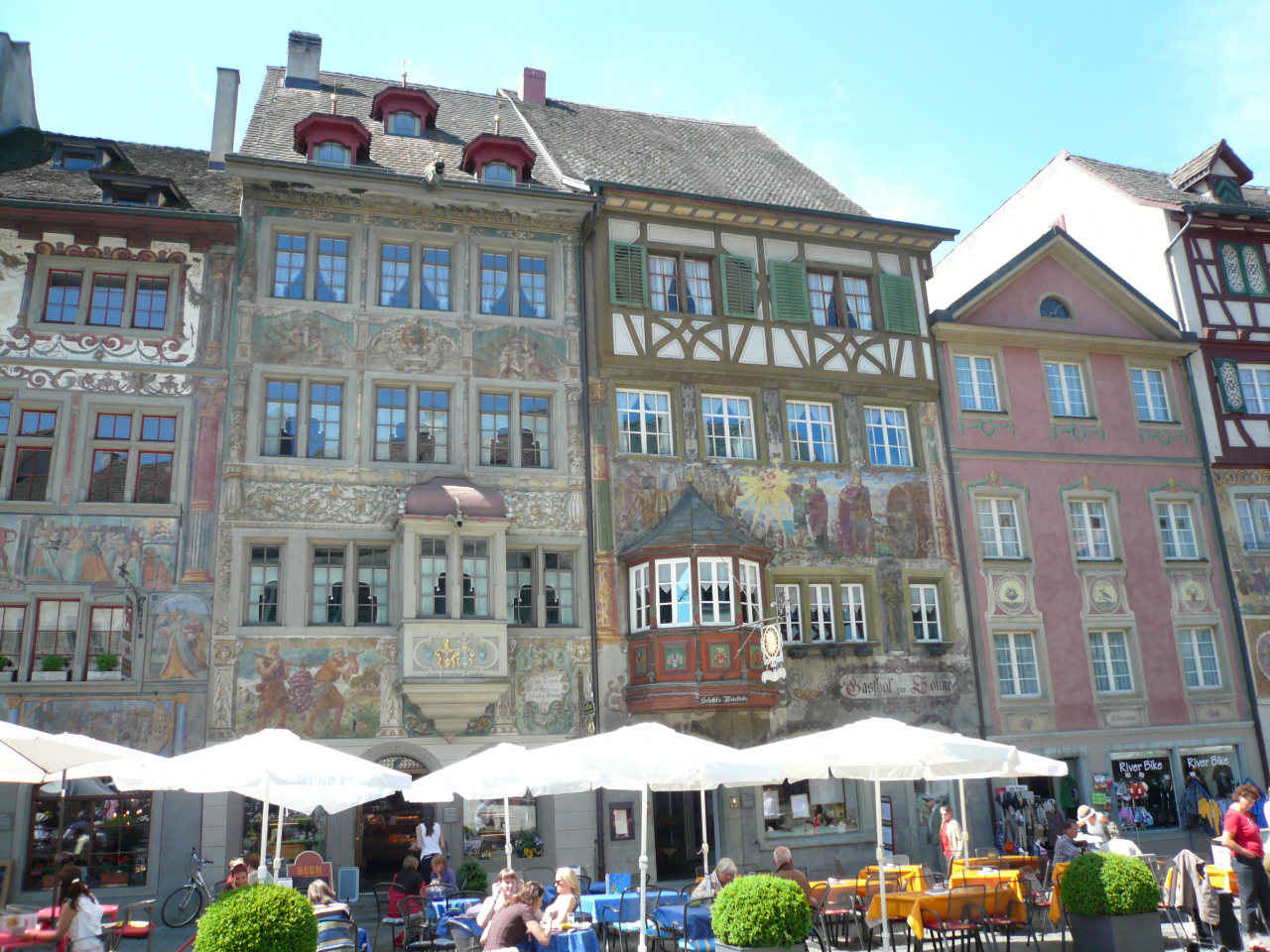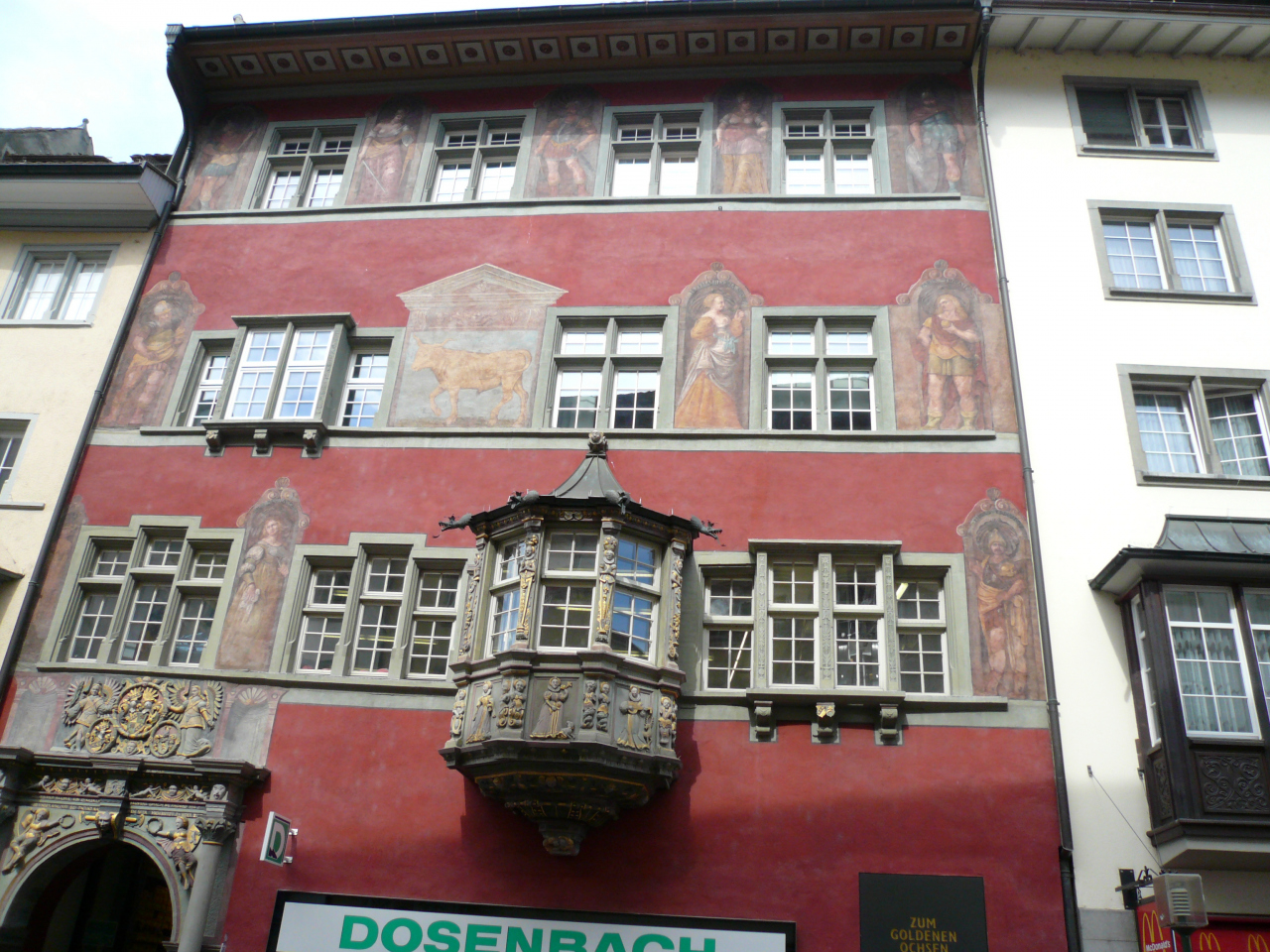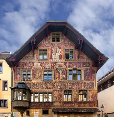 州都シャフハウゼンで一番目につくのは「金の雄牛の家」のフレスコ画だろう。