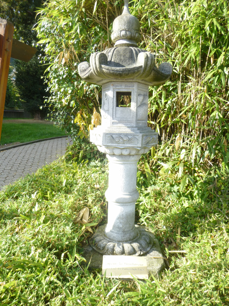 青梅公園と日本語で刻んだ大きな石と、石灯籠が左右に立ち、ここからが青梅公園だ。