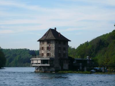 旅行資料(Aral Auto Buch 1974~75年版)では、Rheinfall von Schaffhausenとあり、隣接地のSchaffhausenシャフハウゼンに在るように記載されている。実際は所在地のアドレスNeuhausen am Rheinfallノイハウゼン・アム・ラインファル(滝)の如く、ノイハウゼンが正しいようだ。(この口コミの所属もシャフハウゼンだが)