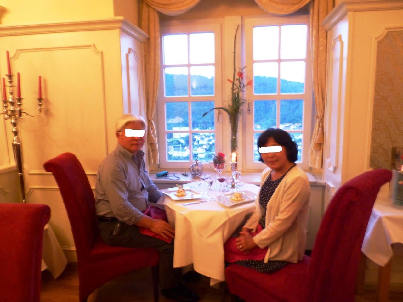 2泊したホテルの夕食は地下にある、グルメレストランのWeinkeller-Restaurantワインケラー・レストランで食べた。味もサービスも良く、雰囲気の良いレストランはゴー・ミョーでは12点です。