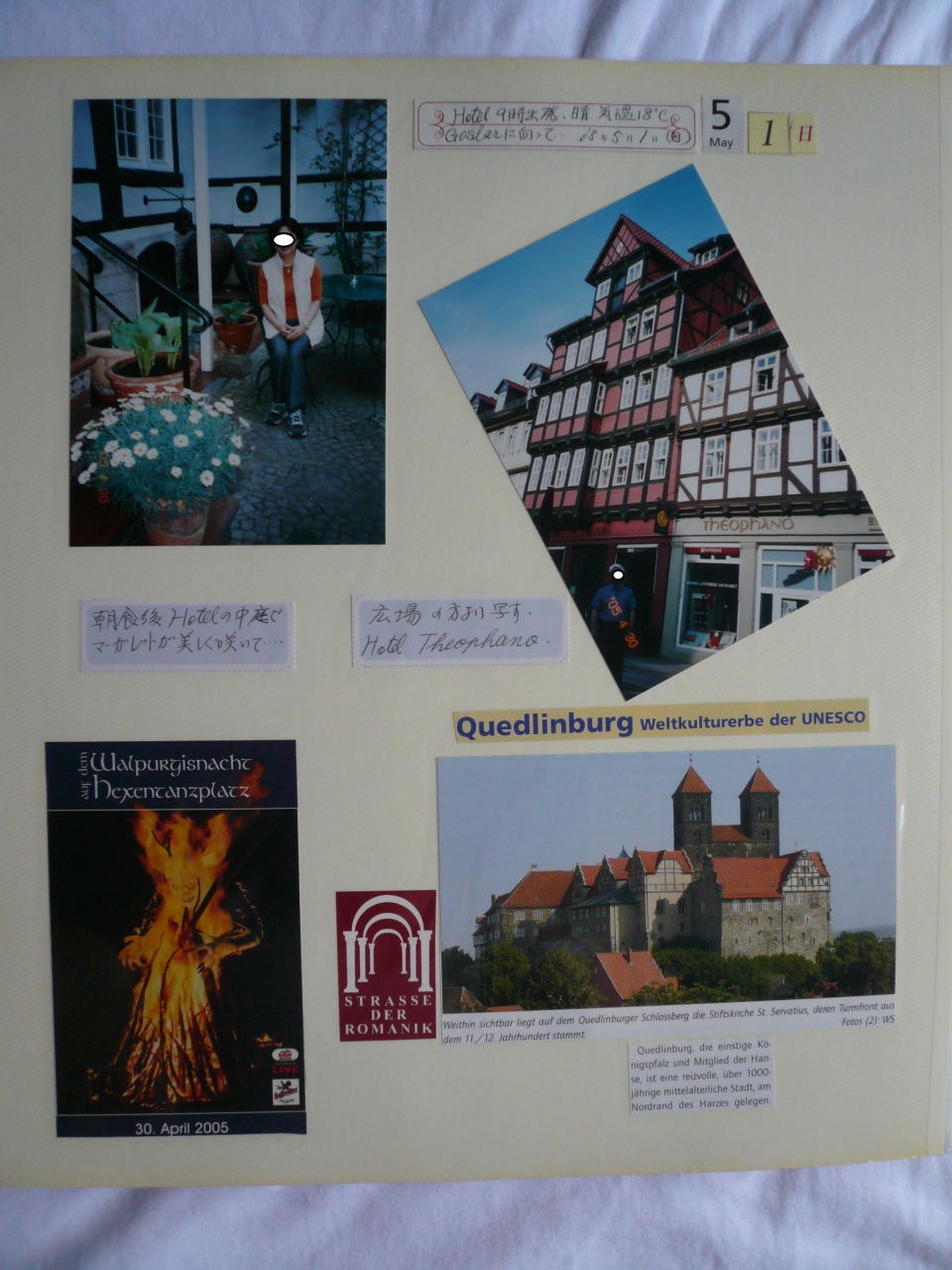 Quedlinburgクヴェトリンブルグは1994年に『世界遺産』に登録されている、人口2万6千人の小さな町である。ハルツ山地の北に位置するこの町は、ドイツ初代の王(ザクセンの王)、ハインリヒ一世が919年、Schlossbergシュロスベルグ(城山の意)を居城としたもので、“1000年の古都”と言われている。