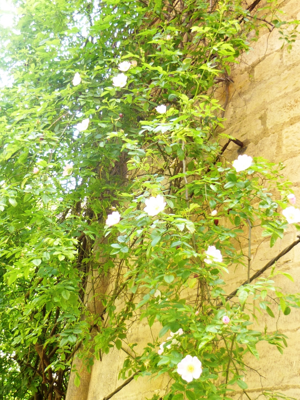 大改装中でほとんど見るべき場所がない所為なのだ。ただ、さすがに“千年のバラ”のある礼拝堂の周辺は一応見ることができた。この日はこの為に来たのだが、残念ながら、白いピンクのバラは数も少なく、しょぼくれた様子で咲いていました。それでもイヌバラの花を接写してみると、やはり美しい。