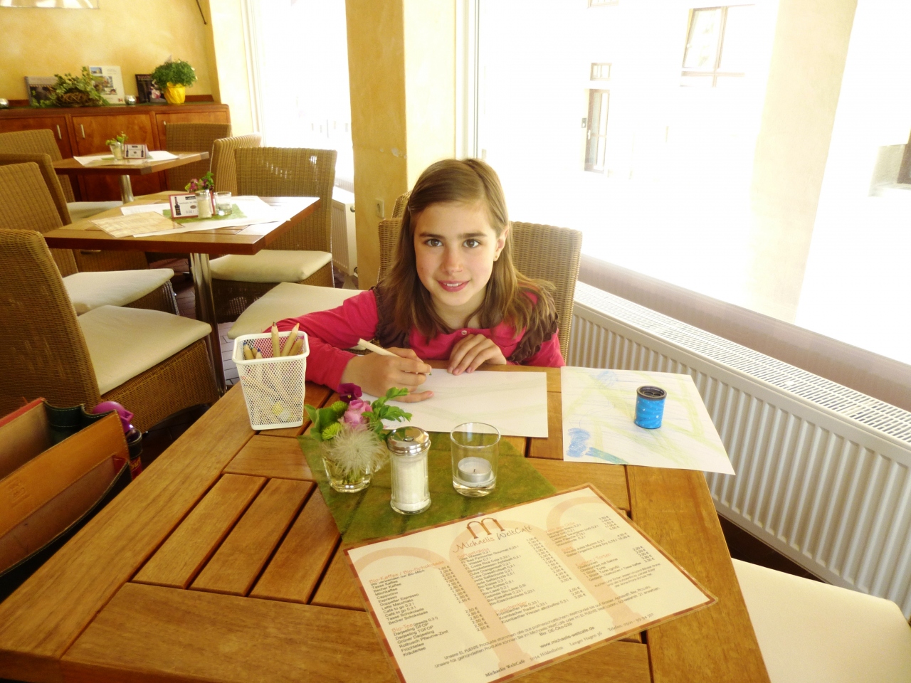 1時間の歩き疲れと少しお腹も空いていたので、まだ清掃していたカフェに入れてもらった。お祖父さん、母親の家族経営の店で、9歳の可愛い女の子が掃除を手伝い、お店のテーブルで勉強をしていました。