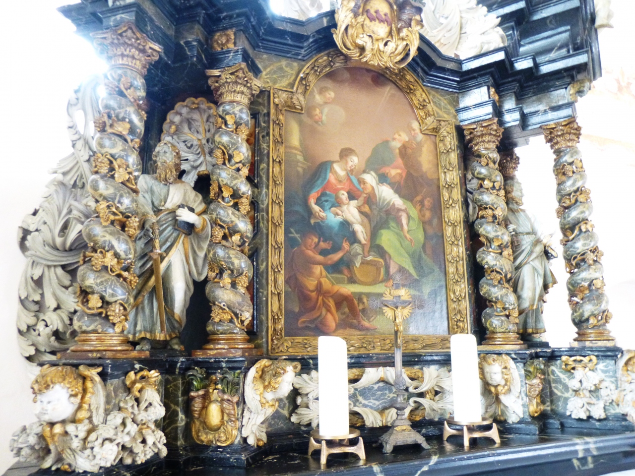 マリアの聖壇の右手にBothmerボースマー家の立派な墓碑(1625年)がある。その横の階段を降りた地下聖堂クリプタにはベルンヴァート司祭の棺が置かれていた。