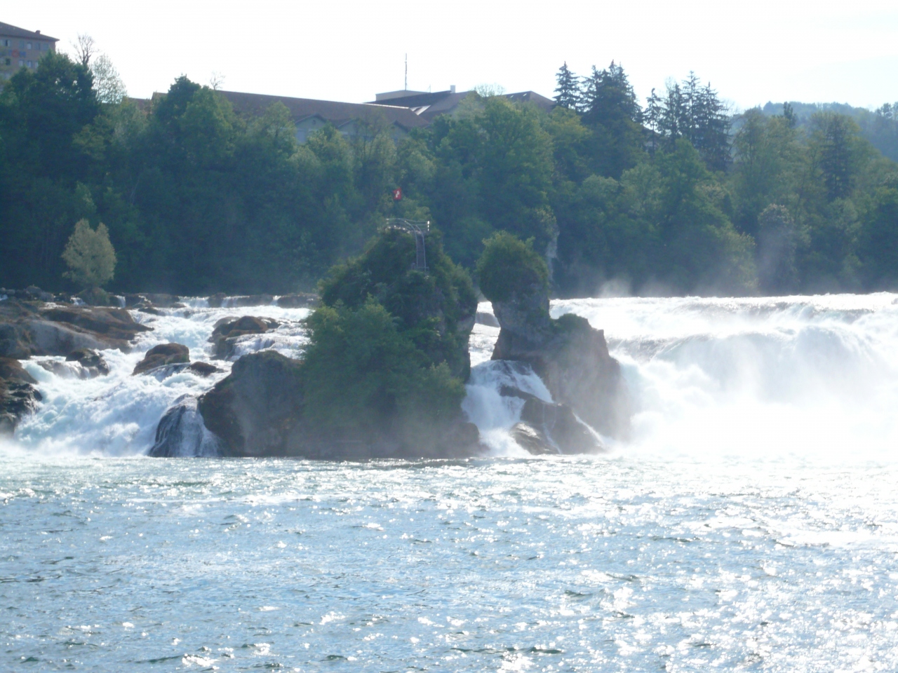 本城館の4号室(2階)は新婚さん用Suiteです。ちょっとメルヘンチックというか、若い女性好みの部屋でした。広々とした部屋の中央に天蓋付きベッドが置かれ、白を基調にした室内、花柄のカーテン、張り出した角部屋は古城のテラスレストランに面していて、テラスの人々を見下ろすことになります。窓からはネッカー川を挟んで、ヒルシュホルンの町が見られる絶好の部屋でした。