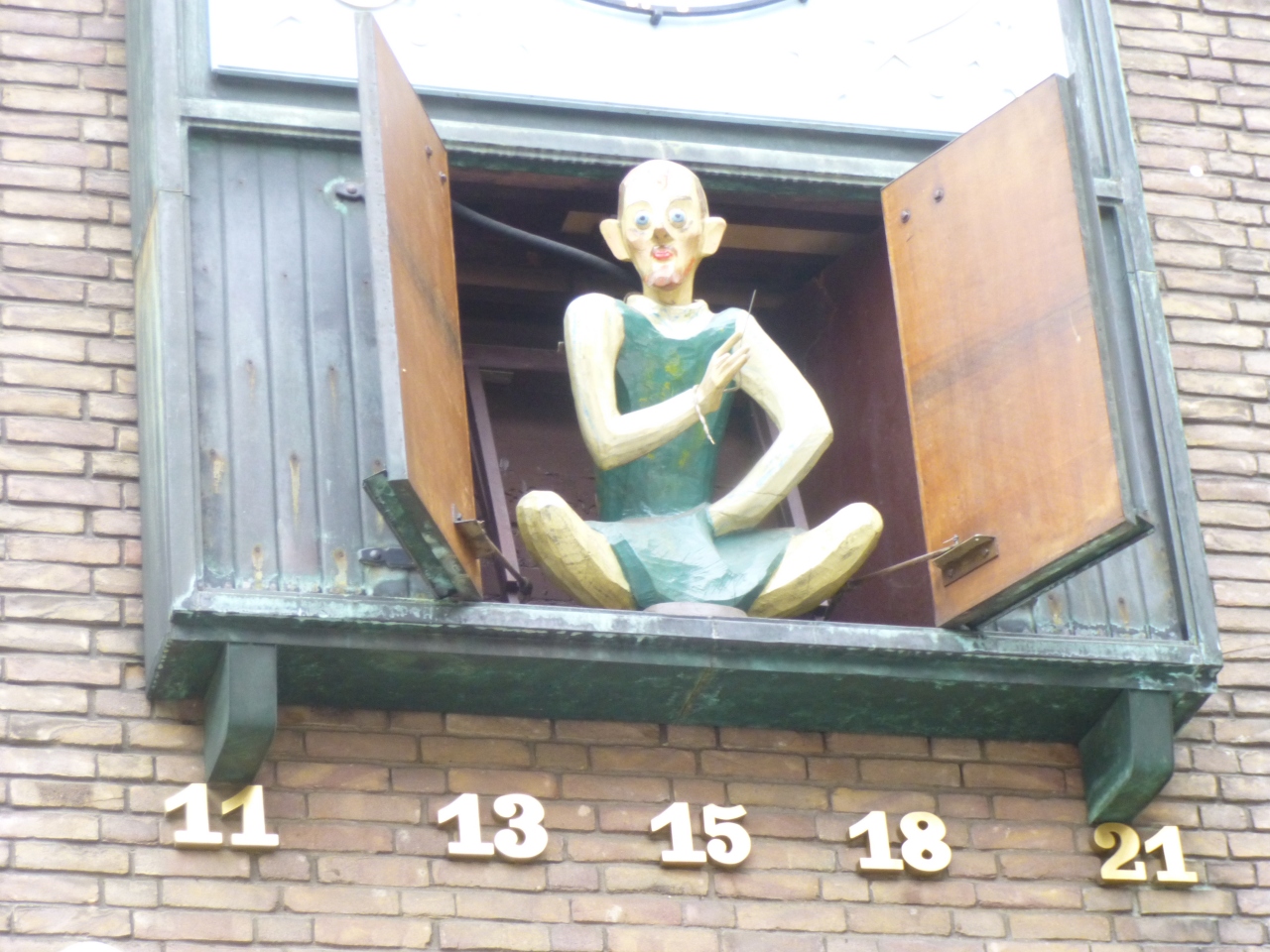 仕掛時計は11、13、15、18、21と一日5回も時計の下の扉が開き、針と糸を持ったシュナイダーさんの人形が出てくる。