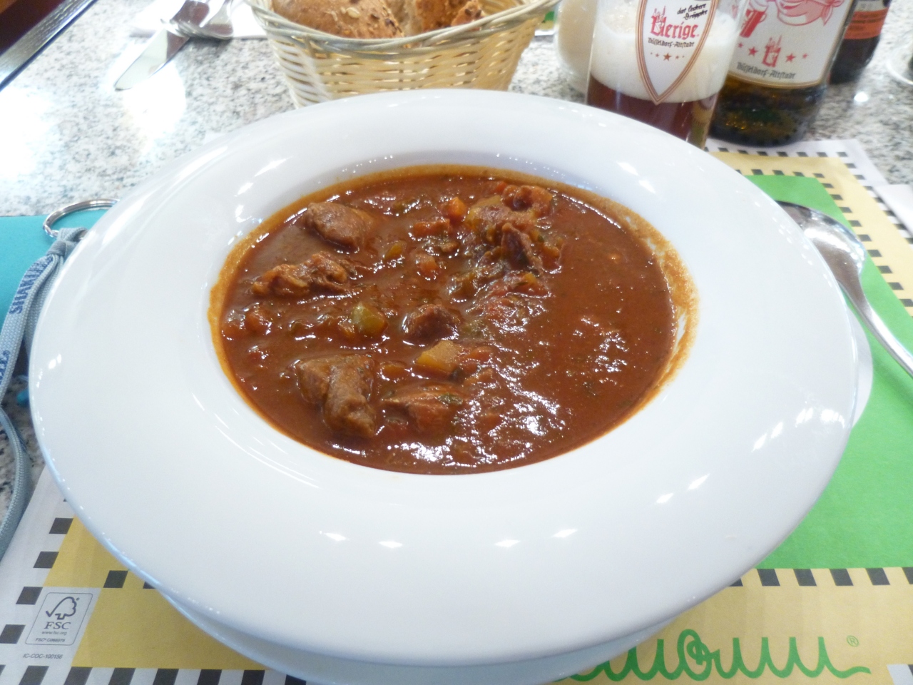 食事はスープとメインの2品にして、家内はビーフコンソメEuro4.6、私がグーラッシュスープEuro5.5、
