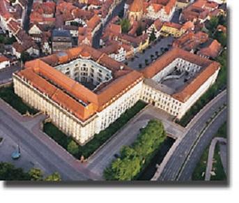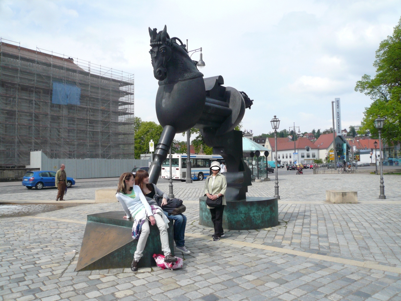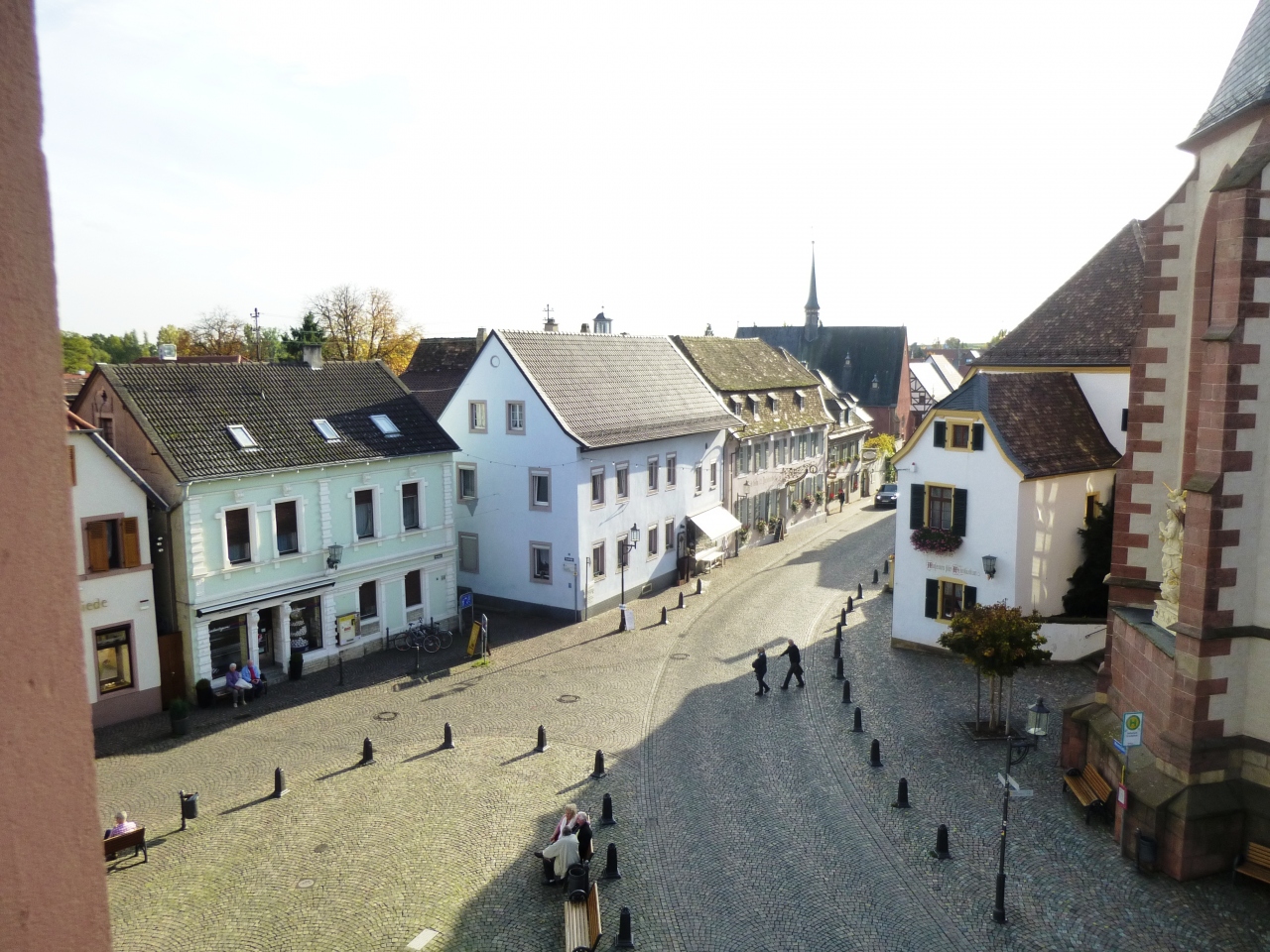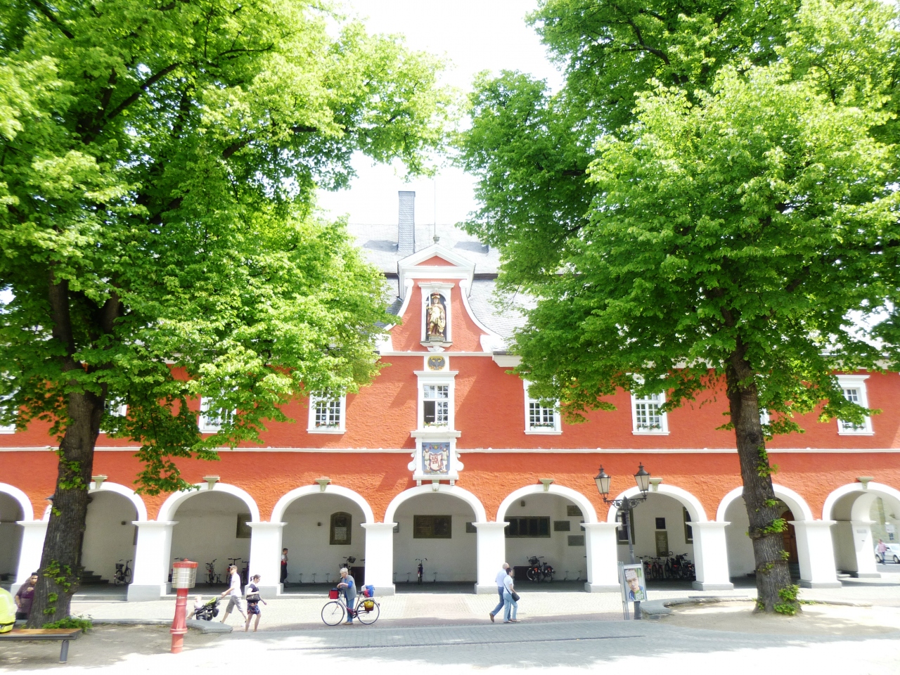 その近くはマルクト広場で、ルネッサンス様式のRathaus市庁舎、選帝候JanWellenヤン・ヴェレン騎馬像(1570年)が絵になる形で立っている。