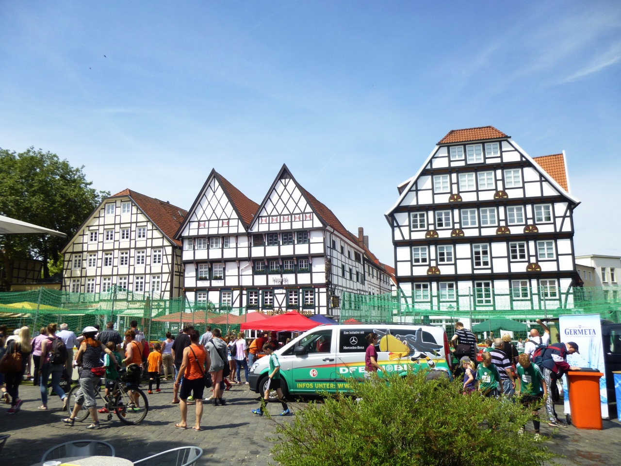 ドイツ最も美しい広場と称される中央広場には中央に石の十字架(958年)や、ペトロの噴水Petrusbrunnen(町の守護聖人ペトロの像が上に立つ・1595年)が立っている。十字架はオットー大帝から町が市場の開設を認められた記念だそうだ。