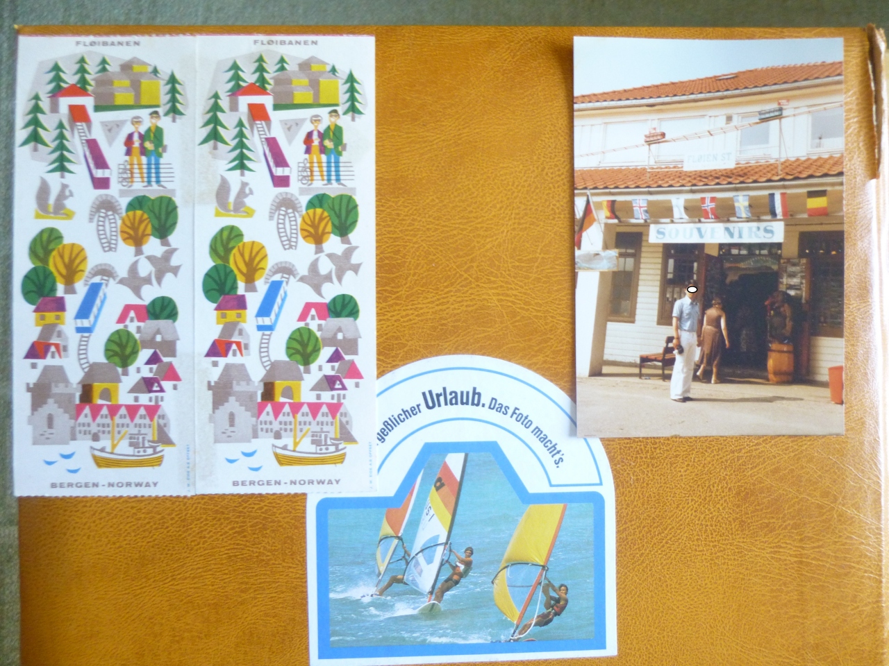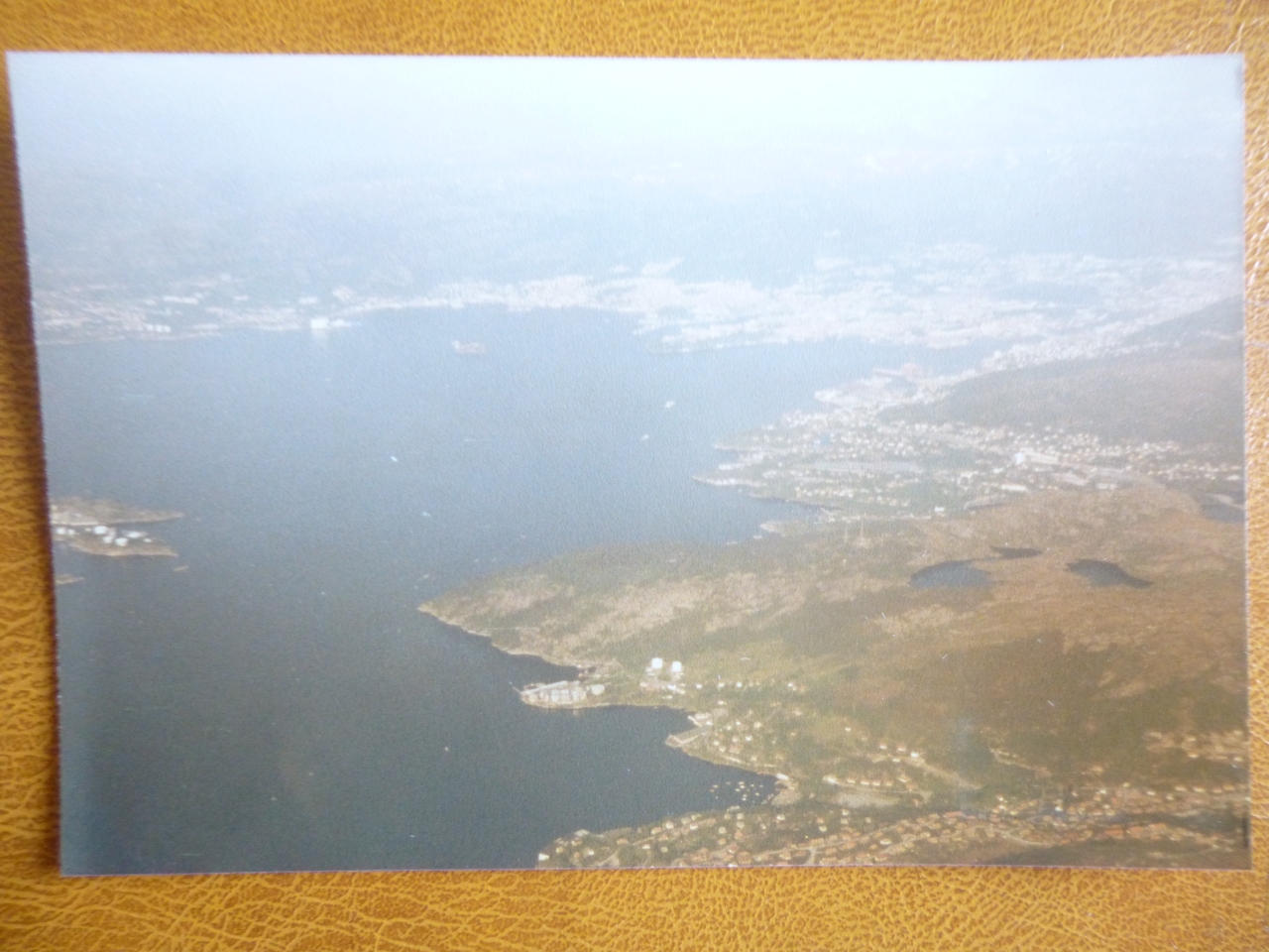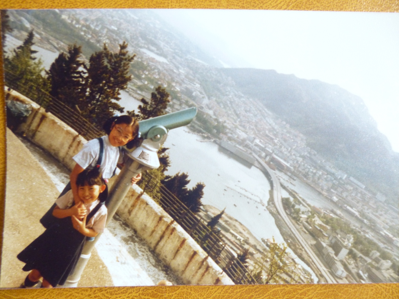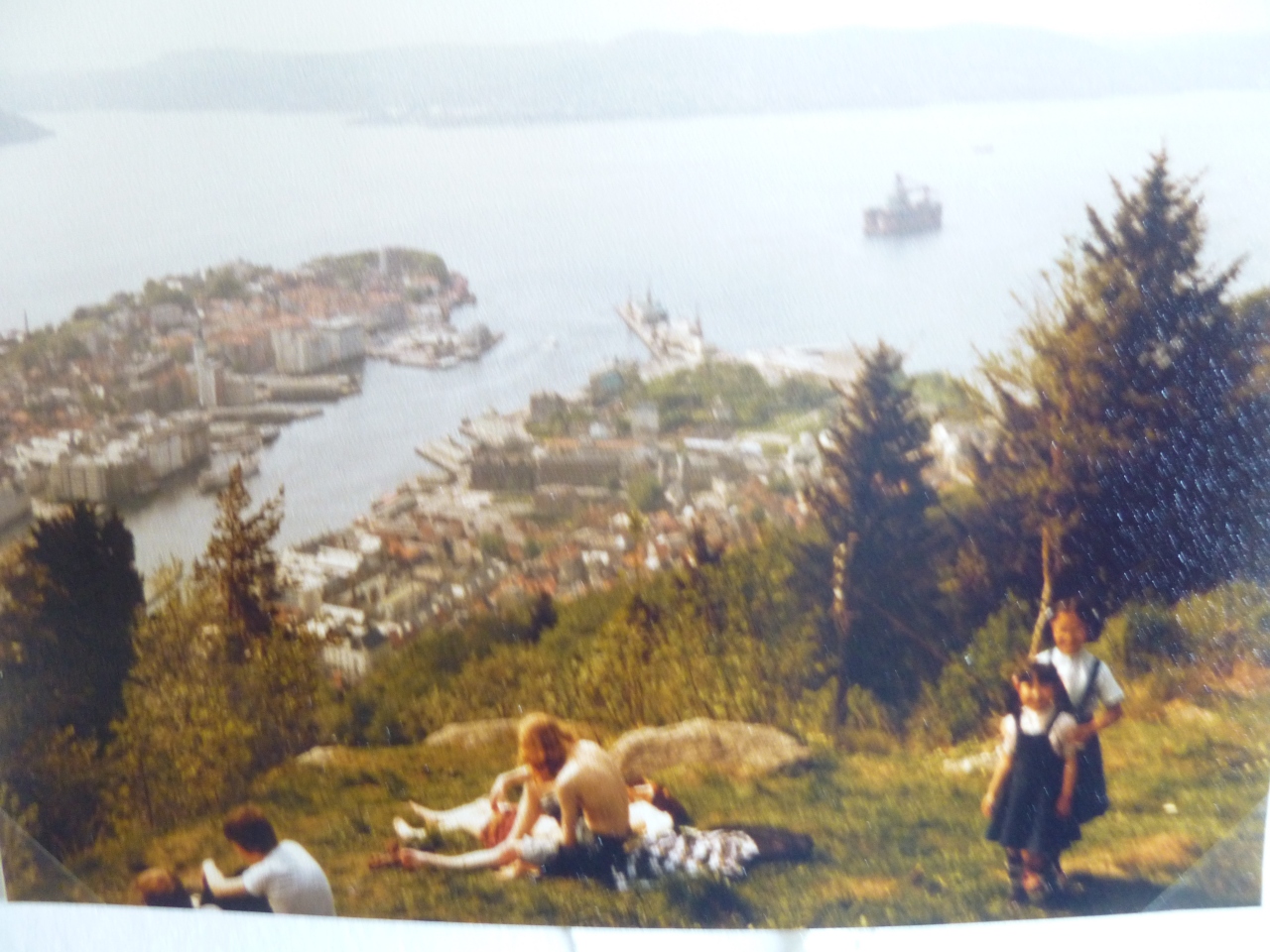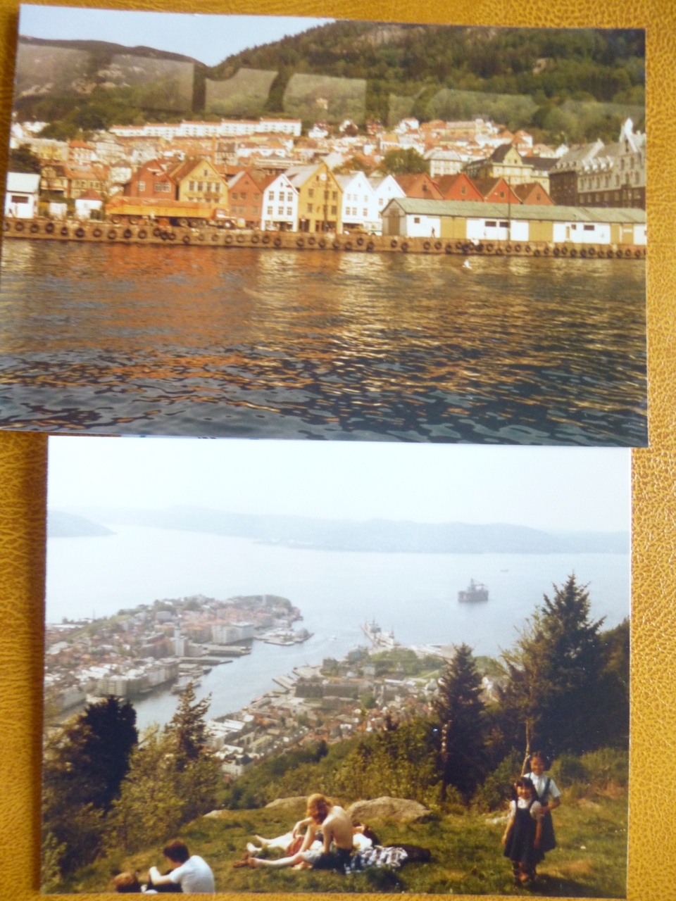 セピア色の思い出:ベルゲン・フロイエン山上にケーブルカーで登り、町や湾の景観を満喫した。